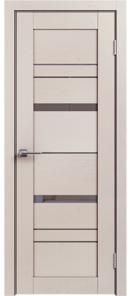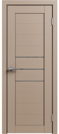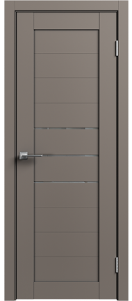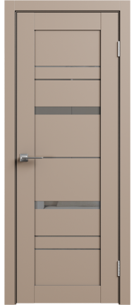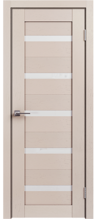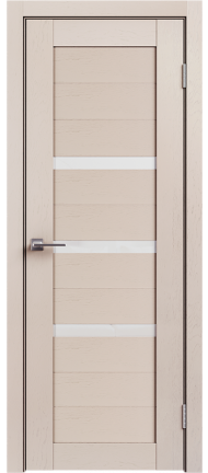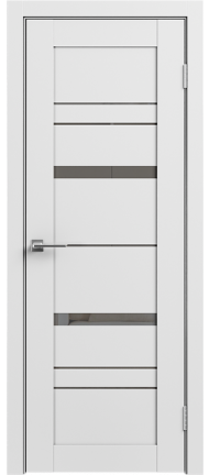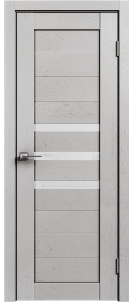 LE — серия дверей современного стиля — входит в СКЛАДСКУЮ ПРОГРАММУ 3 фабрики GEONA. Царговая конструкция дверного полотна имеет толщину 35 мм и покрывается ПВХ. Остекление — сатинат светлый.